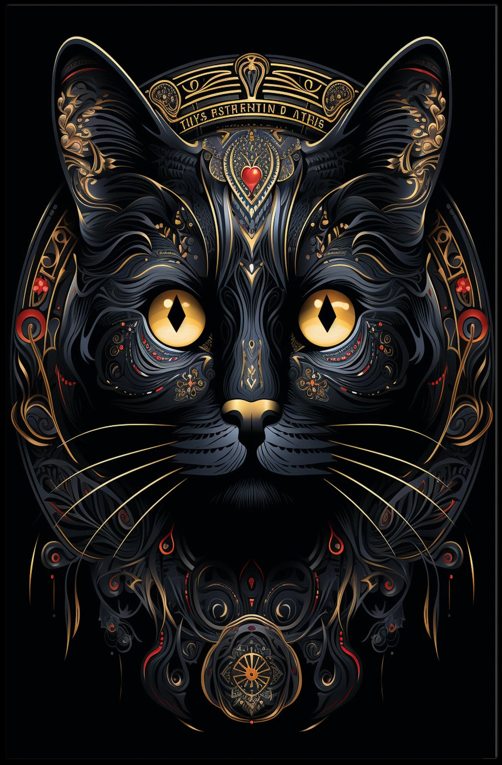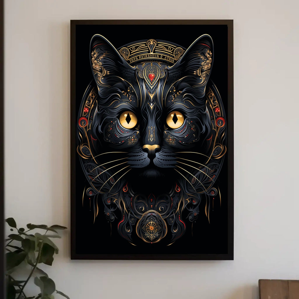 With its mystical poster aesthetic and reflective sheen feline eyes, this cat art print Elevates any room as classic animal decor or a modern aesthetic print that complements both contemporary and traditional interiors. A thoughtful gift for art collectors item and elegant wall print enthusiasts seeking enchanting depiction and timeless style.