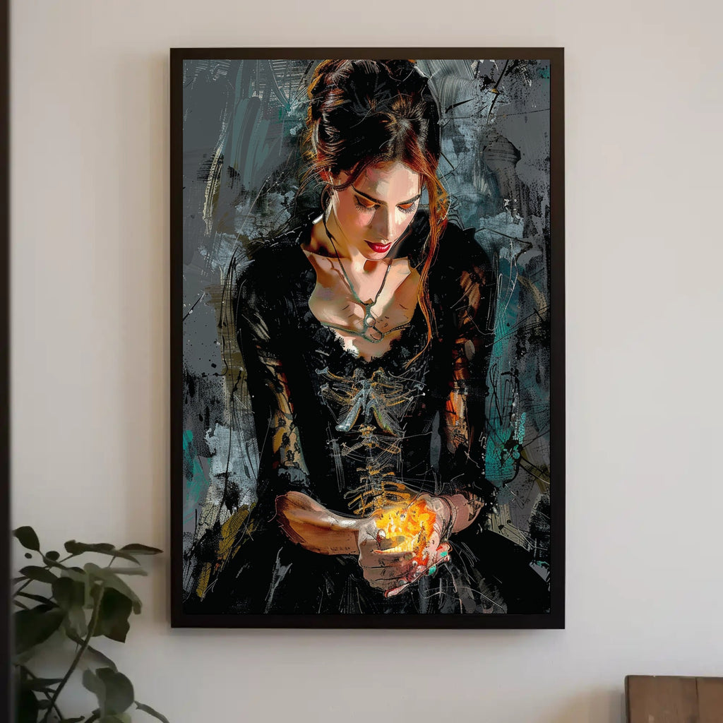 Add the Mystical Gothic Woman with Fiery Object Poster by PosterGoat to your cart today and bring a touch of enchanted darkness to your space.