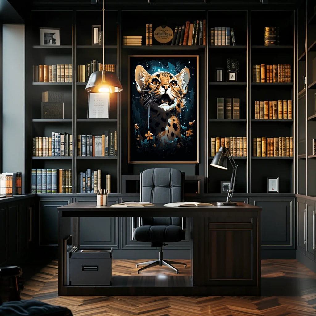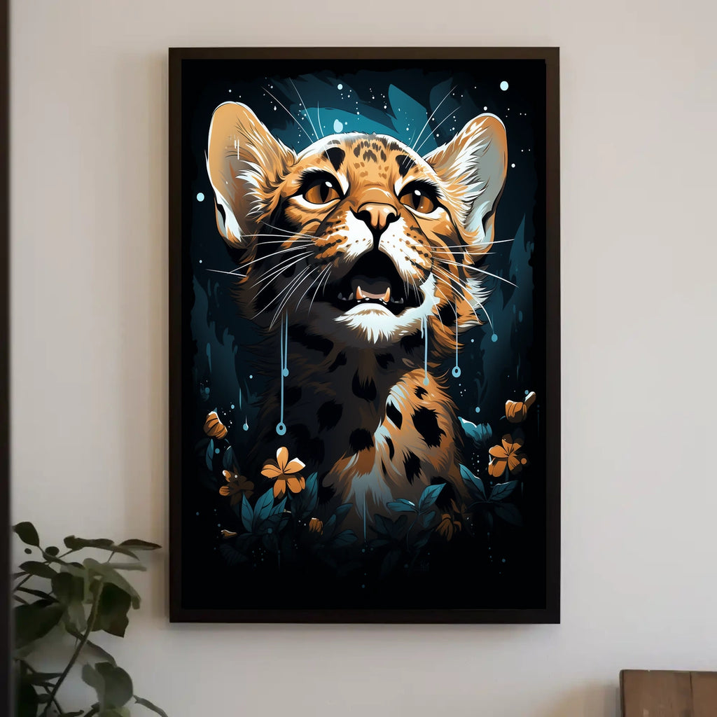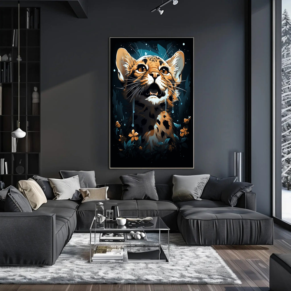 Designed for lovers of abstract jungle scenes, dreamlike wall decor, and contemporary feline art, this poster blends modern surrealism with vibrant wildlife imagery. It’s a striking addition to any space and pairs well with bold color art, mystical decor, and surreal illustration styles, turning your walls into a narrative of wonder.