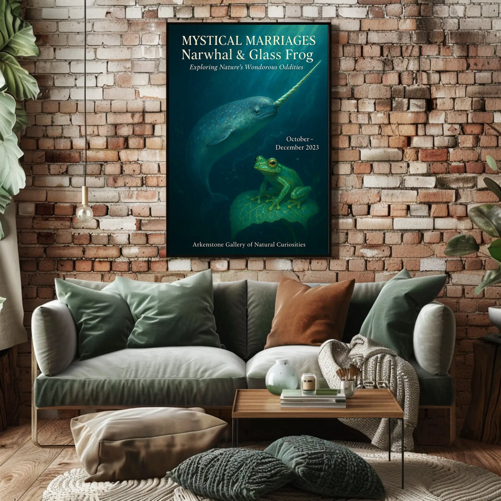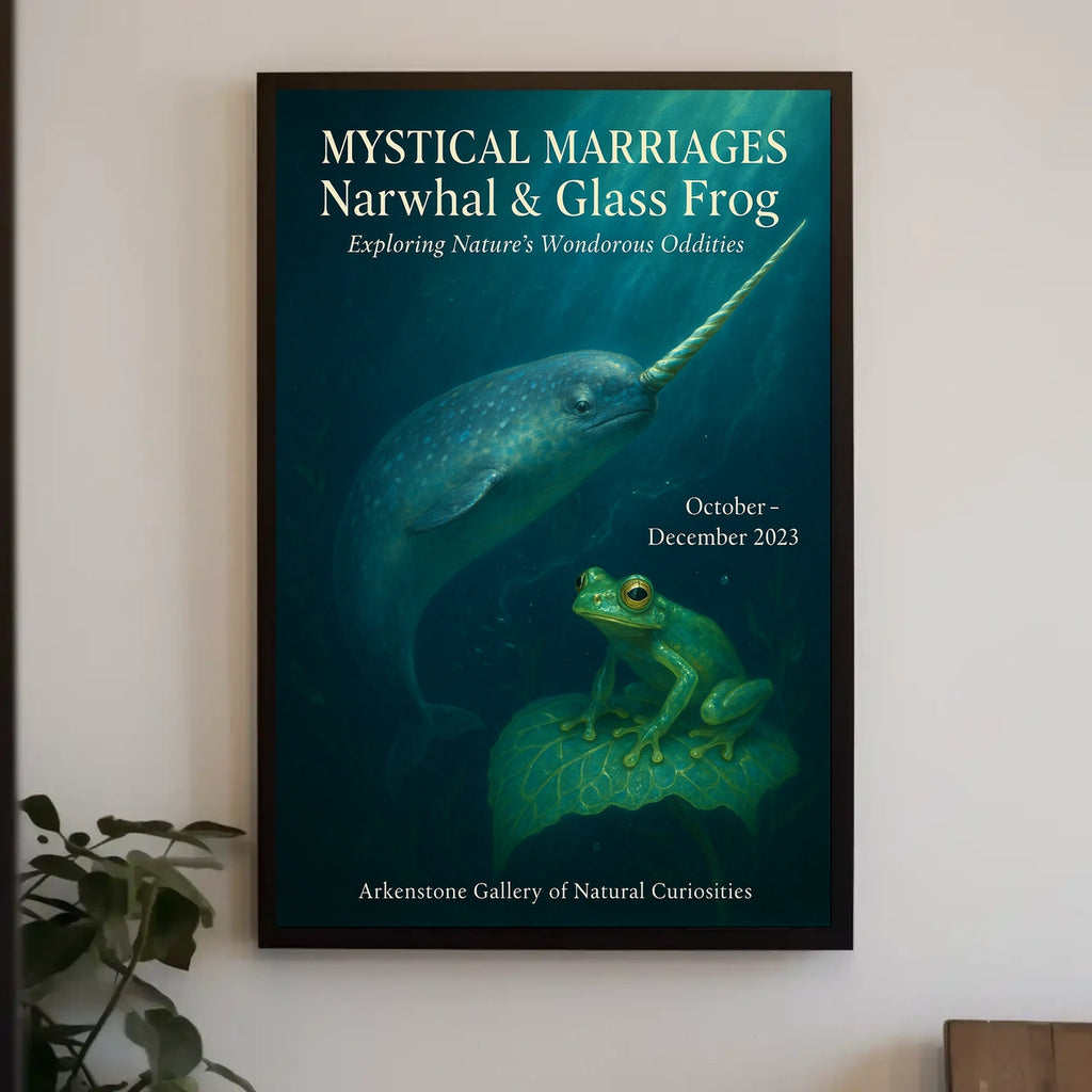 Immerse your walls in a dreamy fusion of fantasy and real-world scenery with this Mystical Marriages Narwhal Glass Frog poster. Designed for decor lovers and wanderlust spirits, it adds charm to any room and serves as a striking focal point or subtle accent in your gallery wall.