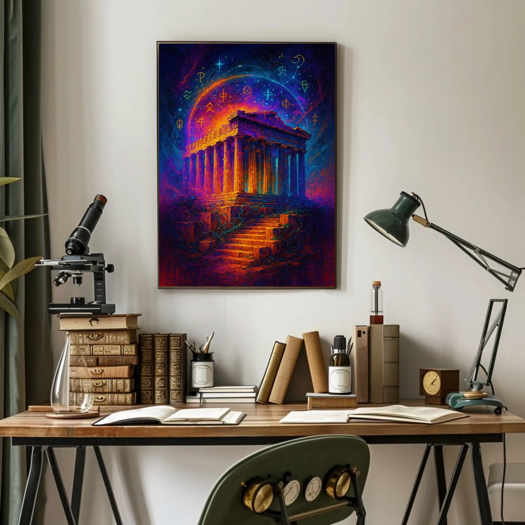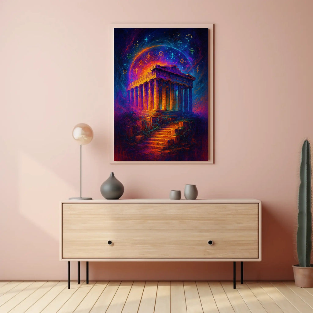 In short, Mystical Ruins Under Cosmic Skies delivers ambiance, color, and wanderlust to any wall. Add this poster to your cart today and transform your space with a touch of otherworldly charm.