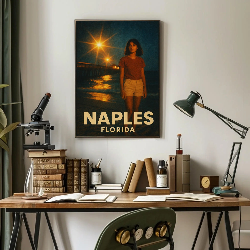 Ideal for living rooms, bedrooms, offices, or as a thoughtful gift, this Naples, Florida Nighttime Serenity poster brings a sense of calm and wanderlust to any space.