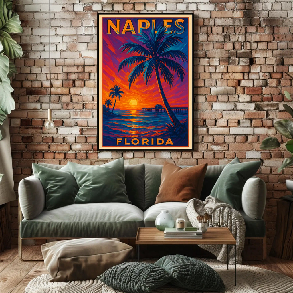 Perfect for art lovers seeking a Florida-inspired addition to their wall art collection, this Naples poster serves as a scenic, sunset-themed gift or souvenir for homes, offices, or classrooms.