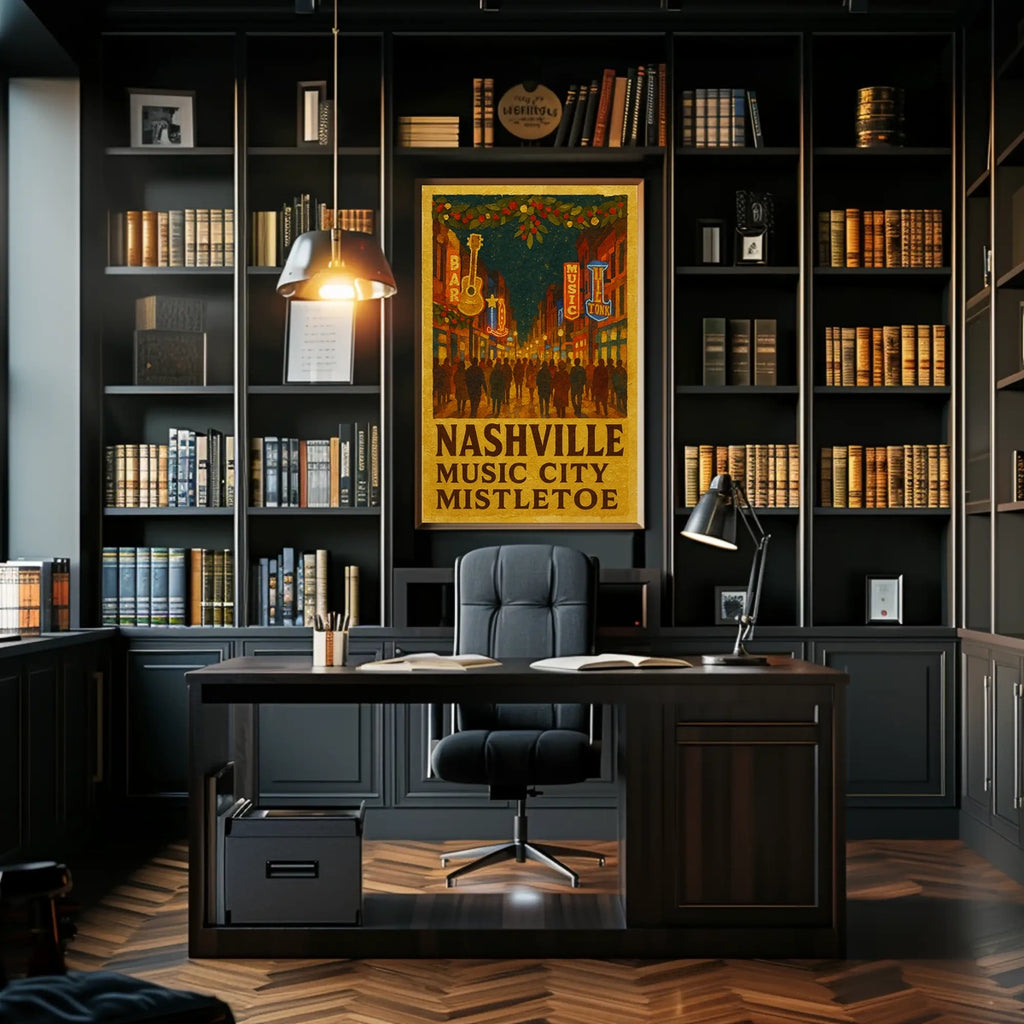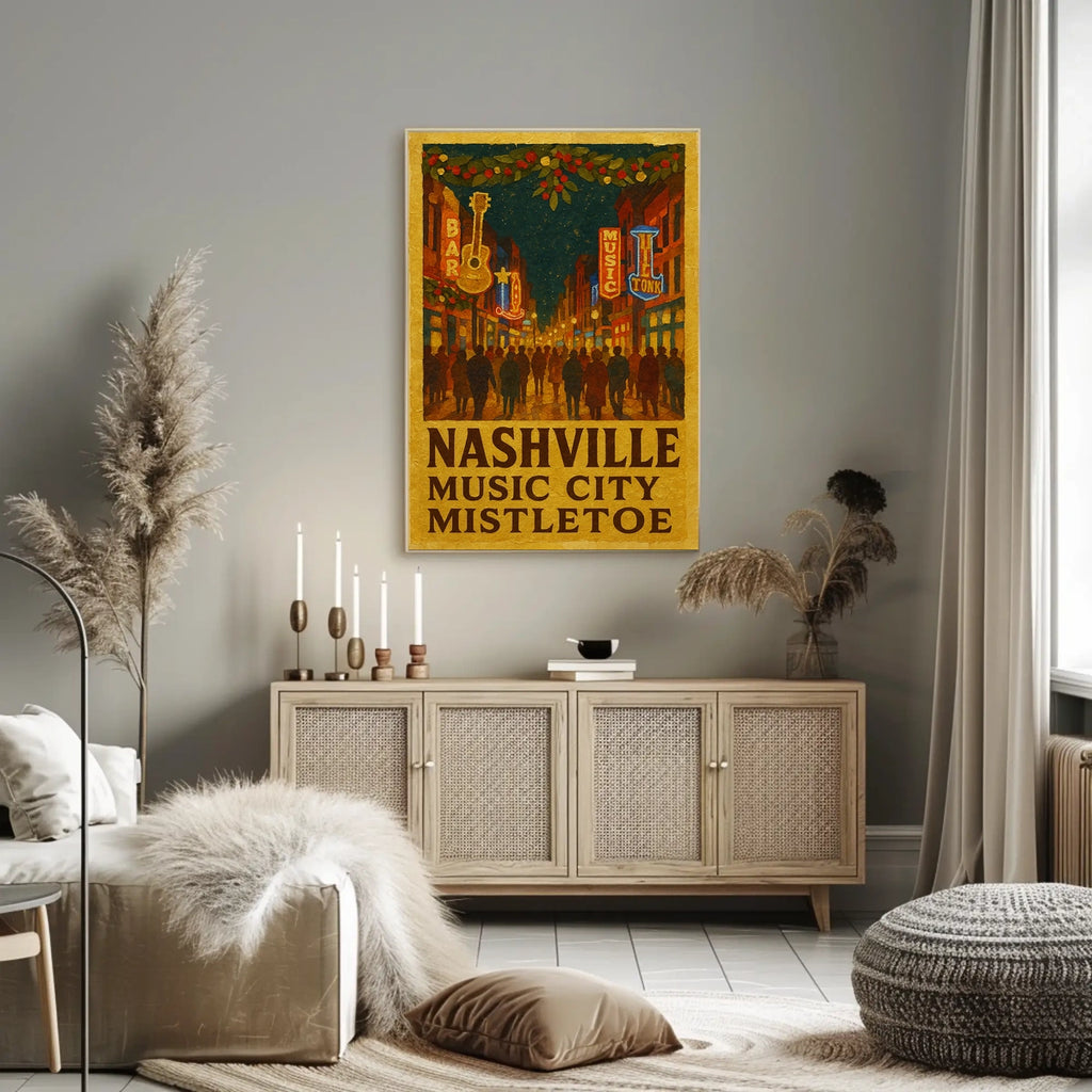 This poster captures the essence of Nashville Music City Mistletoe. Designed for decor lovers and wanderlust spirits, this art print enhances any space with a distinctive blend of music-inspired energy and scenic charm.