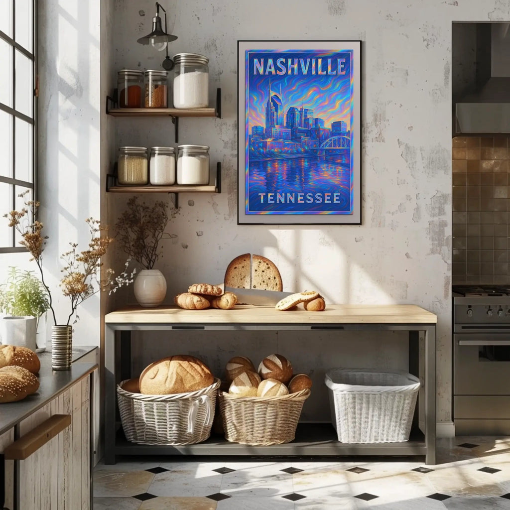 Perfect for living rooms, bedrooms, classrooms, or offices, this scenic poster serves as a stylish souvenir of Nashville's vibrant skyline and culture.
