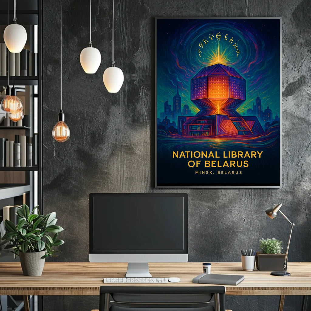 Celebrate the iconic National Library of Belarus with this Architectural Marvel Poster. Designed for decor lovers and wanderlust spirits, this art print distills the building's soaring curves into a striking wall piece that instantly elevates any room. With its crisp lines and evocative monochrome-to-soft-hued palette, the poster brings a sense of modern intellect and global curiosity into your home or office.