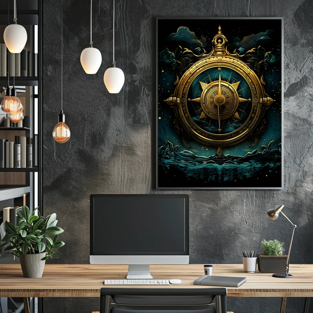 Bring home Navigating the Cosmos and let the golden compass guide daily moments of curiosity. This celestial poster enhances any space and invites bold dreams. Shop now to add this adventure-ready artwork to your collection.