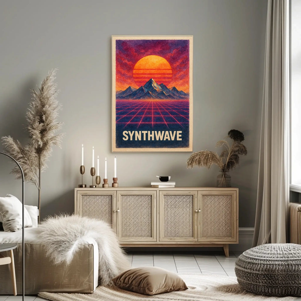 Neo-Retro Synthwave Sunset Landscape - Futuristic Sci-Fi Poster