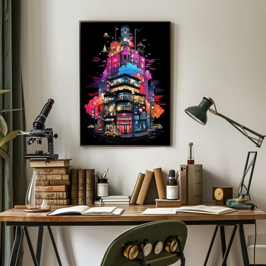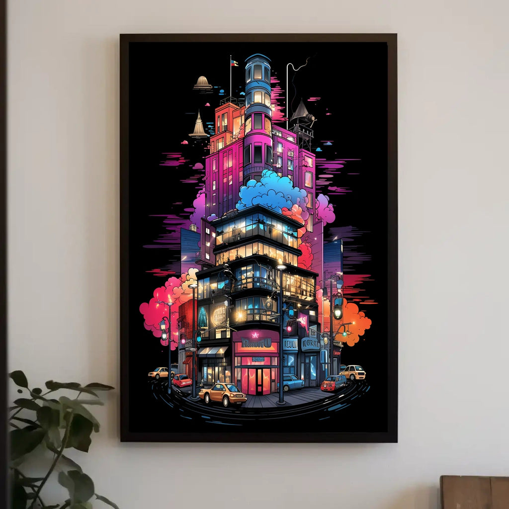 Elevate your space with instant, enduring style. This Neon Cityscape Poster blends artful design with urban energy—add it to your cart today and transform any room into a cinematic city backdrop.