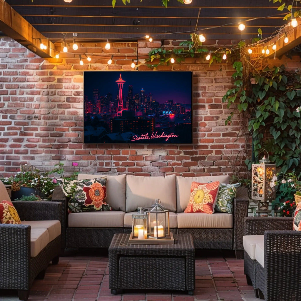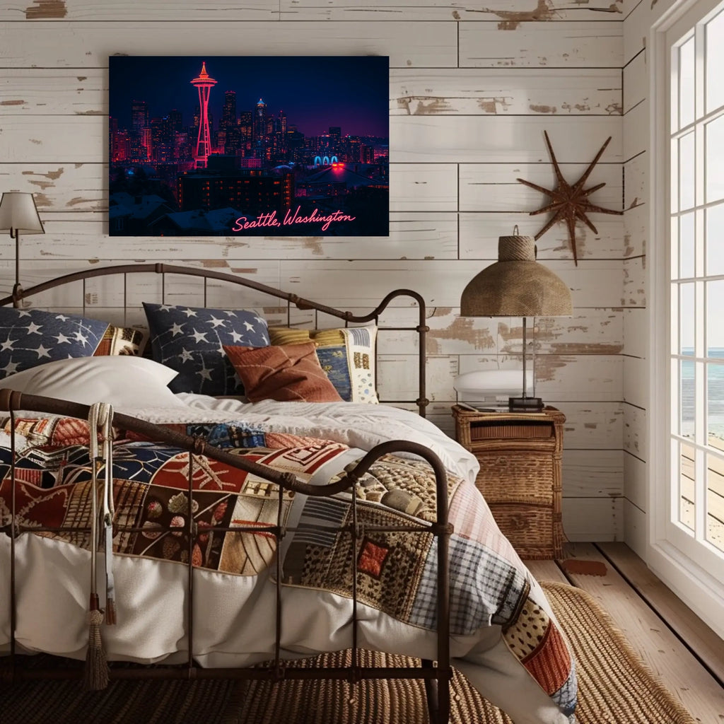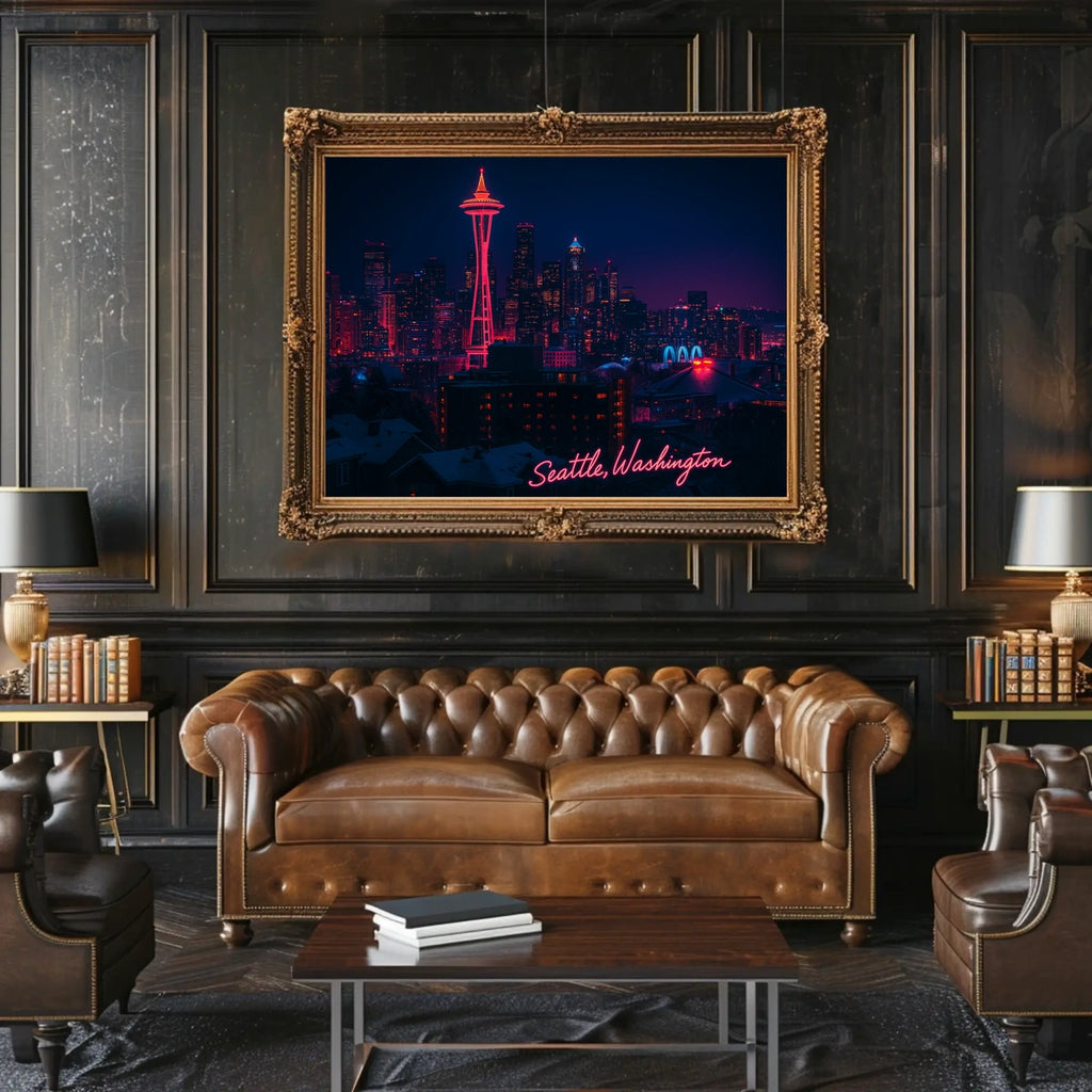 Enhance your walls with a piece that blends urban imagery and timeless style. The design showcases the distinctive energy of Seattle’s neon-lit nights, making it a memorable focal point in any setting.