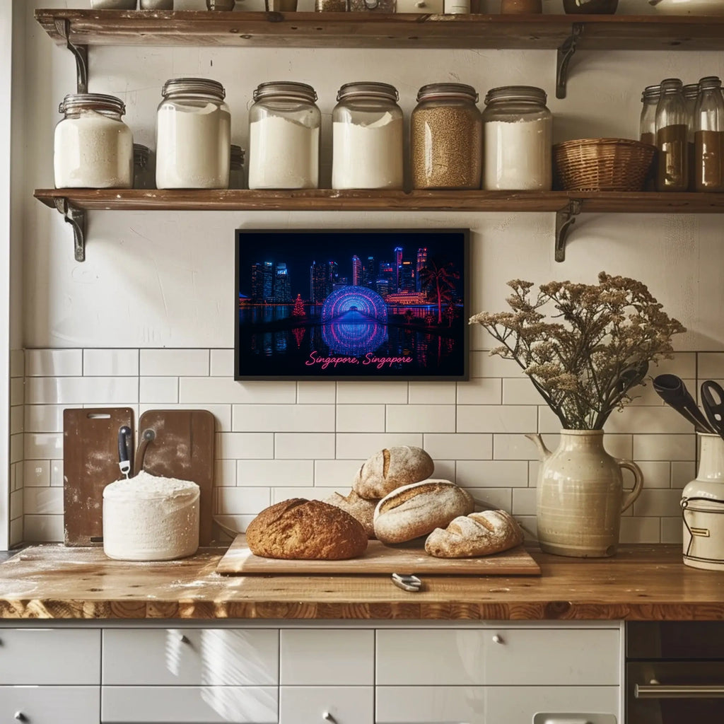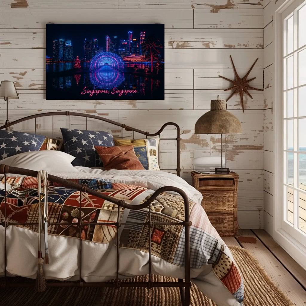 Designed for decor lovers and wanderlust spirits, this art print adds charm to any room with visuals inspired by real-world scenery. Transform your space with a splash of illuminatedSingapore nights and carry a piece of the city’s glow wherever you display it.