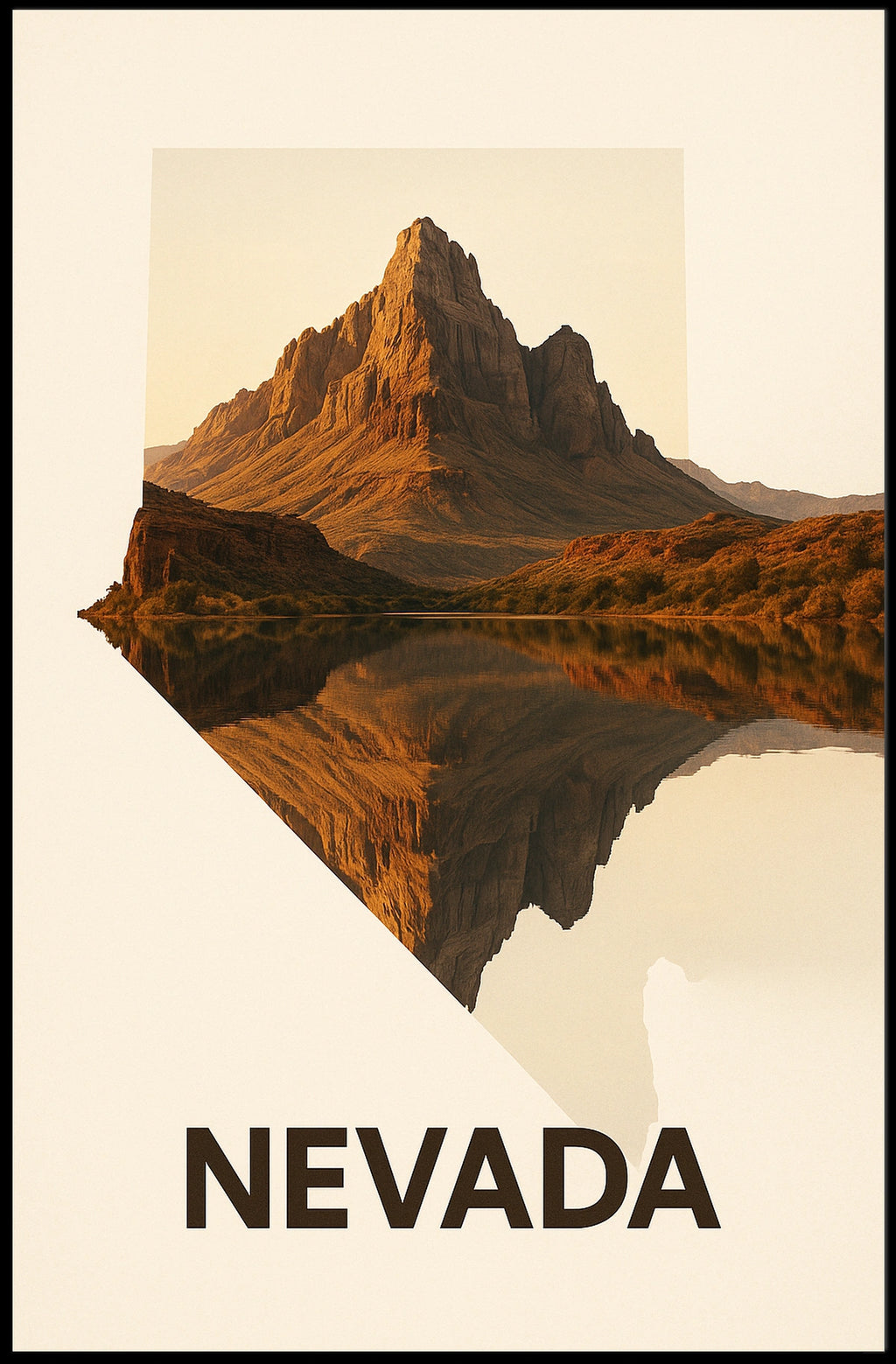 - Detailed design highlighting Nevada's dramatic desert landscapes, sweeping skies, and rugged mountain silhouettes