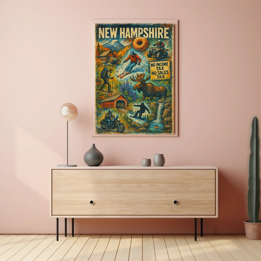This poster captures the essence of New Hampshire Adventure. Designed for decor lovers and wanderlust spirits, this art print adds charm to any room with visuals inspired by real-world scenery.