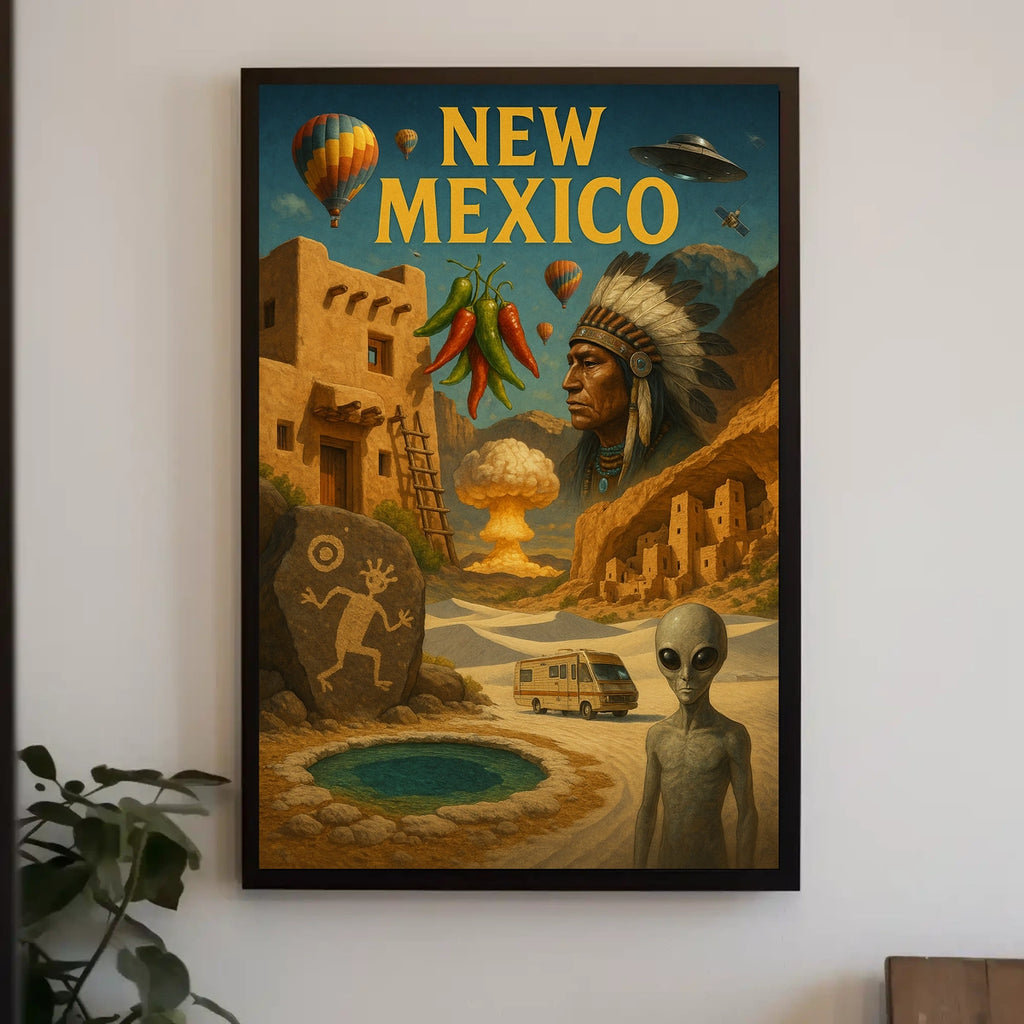 Printed with precision and made to inspire, this artwork is more than decoration—it’s a conversation piece that connects landscape, culture, and style. Bring New Mexico Wonders Poster into your home, classroom, or office today and let your walls tell a powerful story.