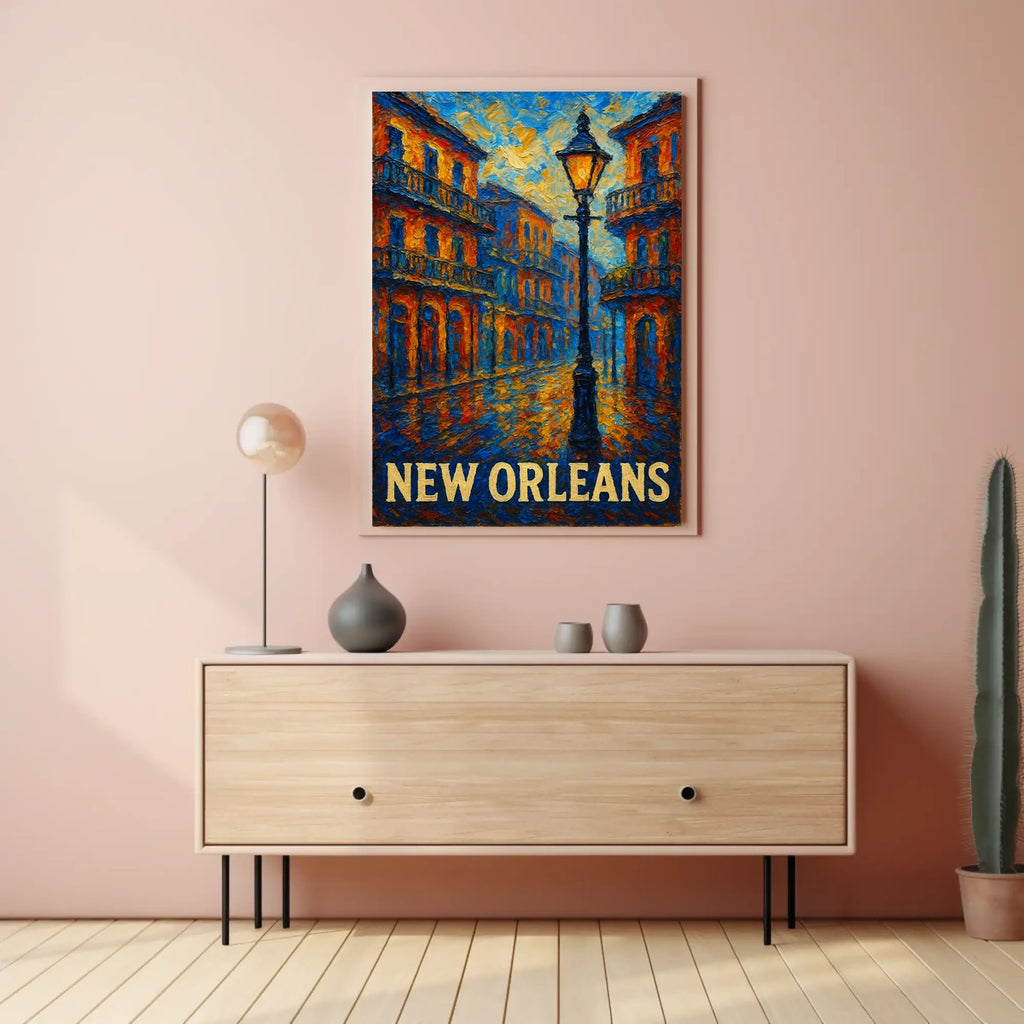 Elevate your space with a piece that blends travel-inspired imagery with classic poster aesthetics. This New Orleans A Vibrant Evening poster is ready to frame and display, turning any wall into a storytelling gallery.