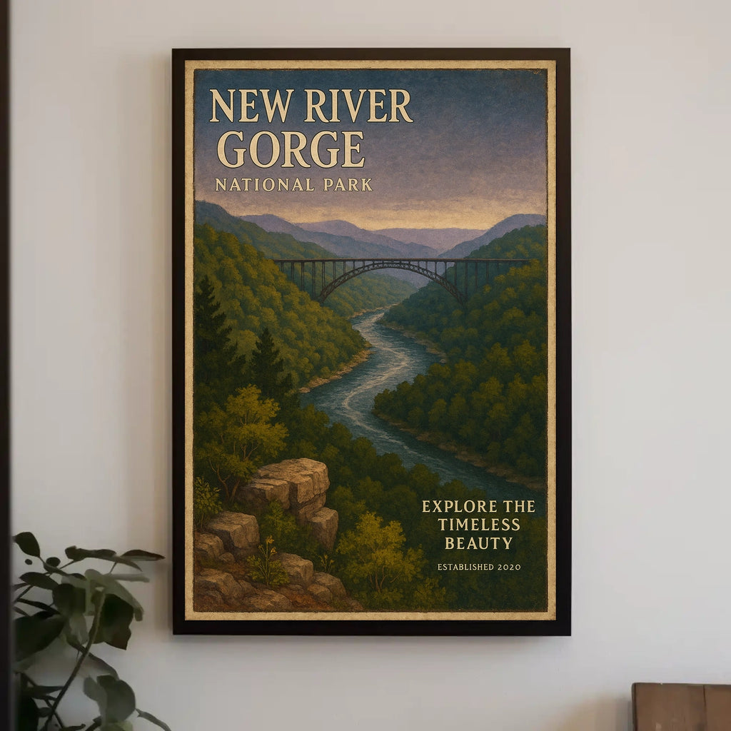 Enhance your living space with a piece that celebrates outdoor wonder and timeless scenery. This New River Gorge National Park poster is a versatile, affordable way to upgrade your wall art. Add to cart now and bring the spirit of the gorge into your home.