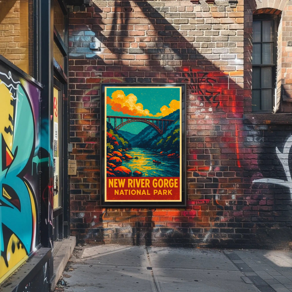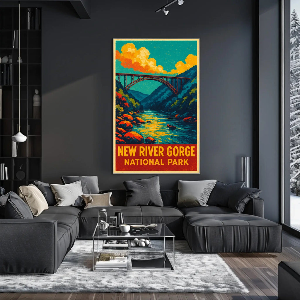 Bring New River Gorge Vintage Travel Poster Art into your home, classroom, or office today and let your walls tell a powerful story.