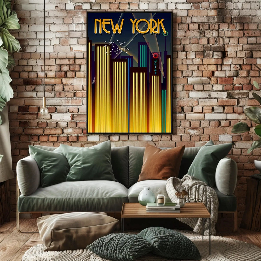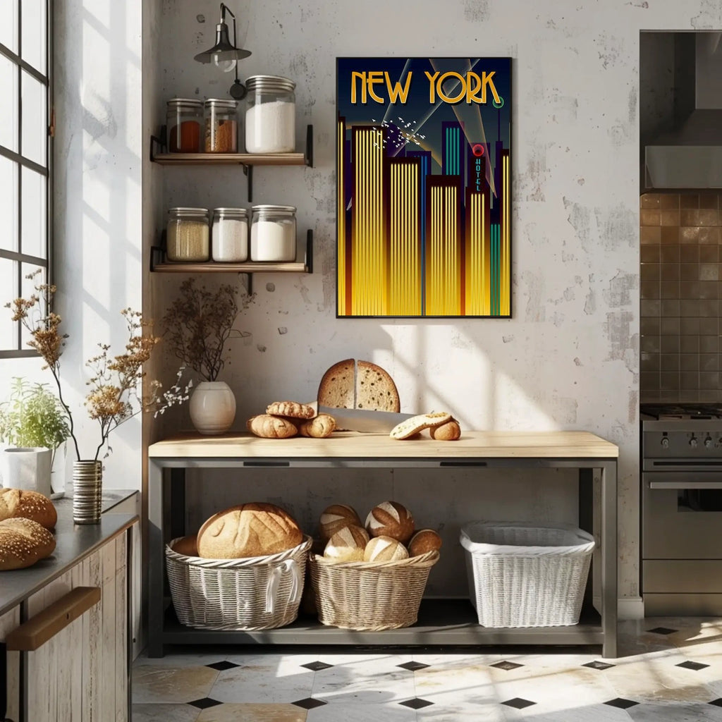 New York City Art Deco Skyline Poster Vintage Wall Art