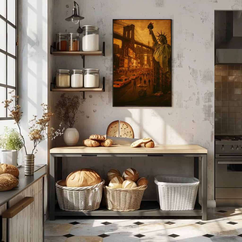 Features:- Iconic NYC landmarks rendered with clarity — Crisp detail of the Statue of Liberty and Brooklyn Bridge turns your wall into a landmark, inviting admiration every day.