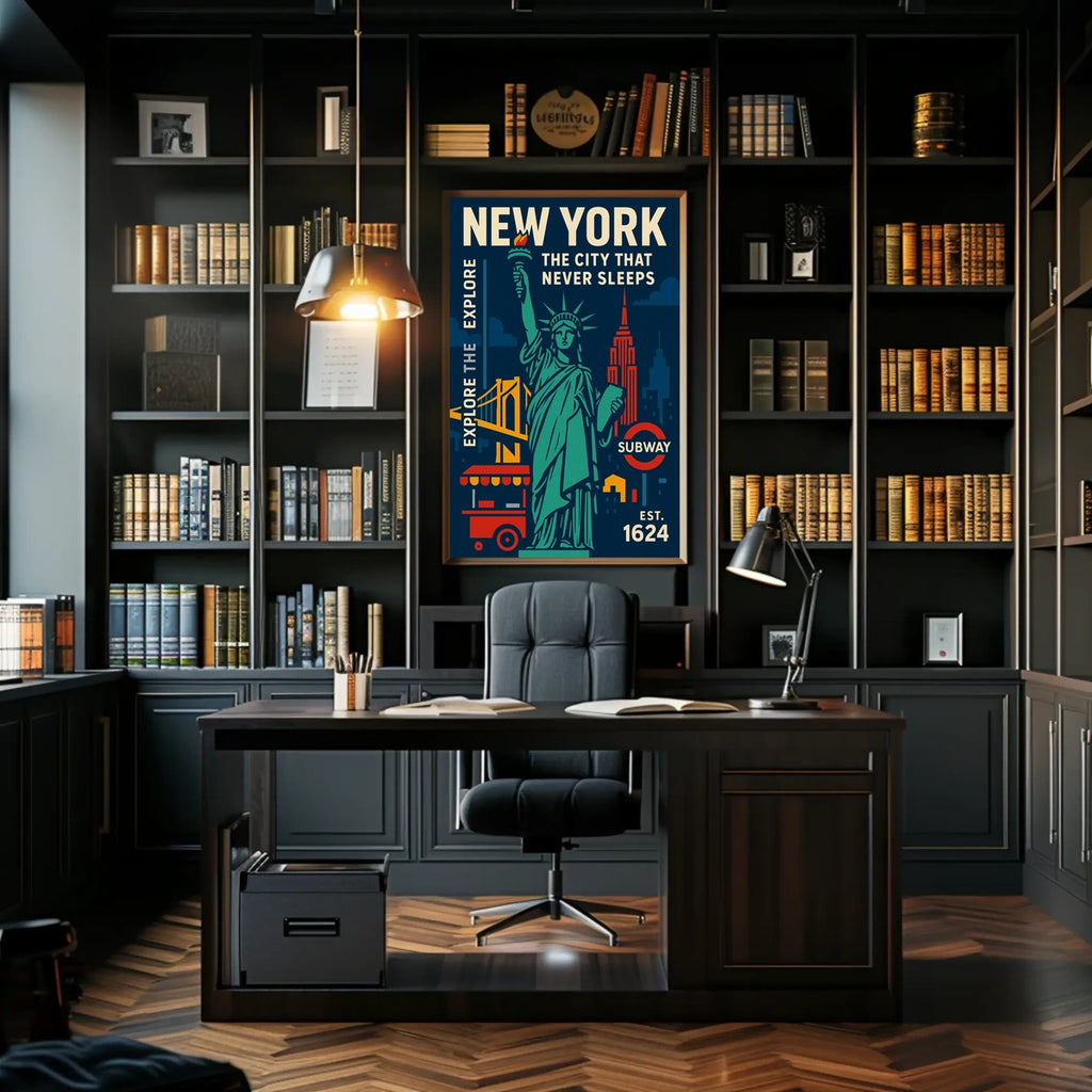 Experience the vibrant energy of New York City with the New York City Icons Illustrated Travel Poster. This bold, graphic print spotlights Liberty, Brooklyn Bridge, and the Empire State Building in a modern skyline that instantly elevates any wall and mood.