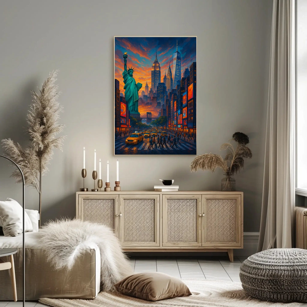 Bring iconic New York energy to your space with this sunset city art poster. It elevates walls, sparks conversation, and fits modern urban life decor. Add to cart now to own a striking piece inspired by the Big Apple.