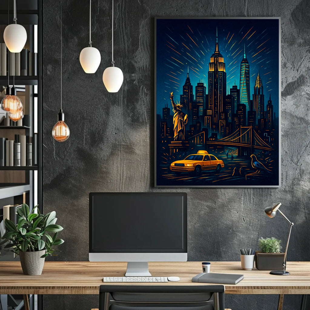 New York City Night Skyline Panorama Poster Modern Wall Art