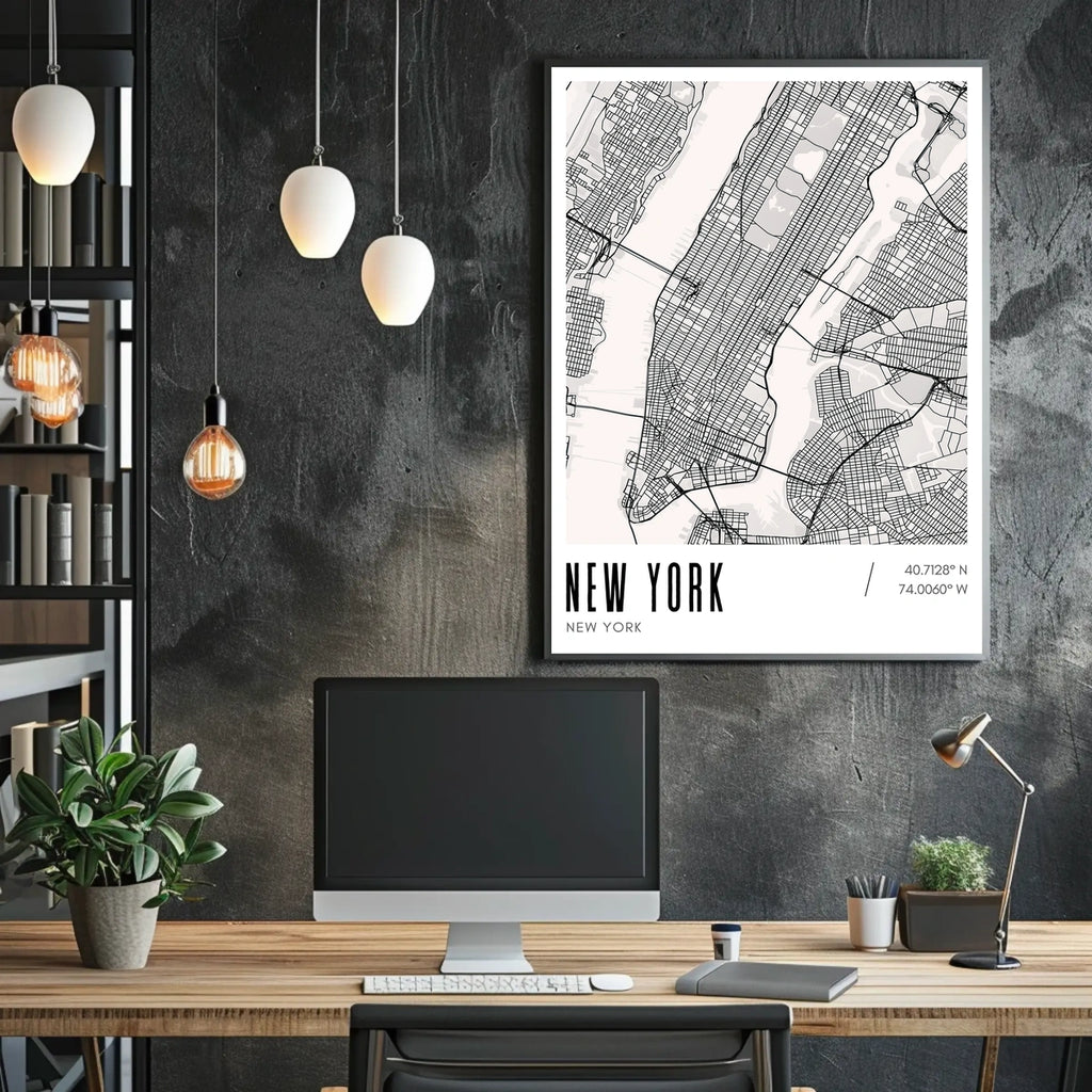 Intro: This New York City Minimalist Map Poster distills Manhattan's energy into a sleek, monochrome artwork that elevates modern design and cityscape decor. The precise lines reveal a sophisticated urban vibe, perfect for contemporary interiors. It complements typography and urban accents.