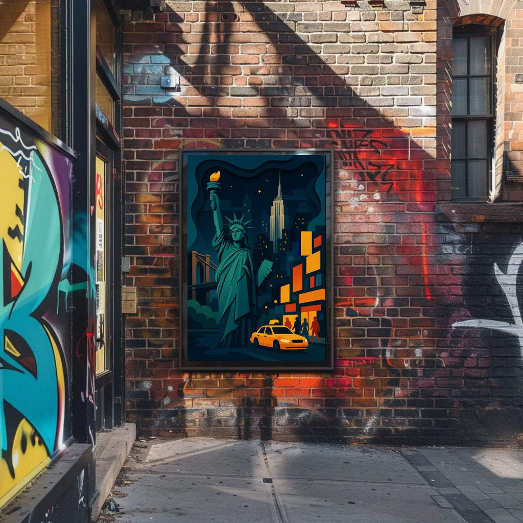 - Iconic landmarks in a single composition — The Statue of Liberty and the Empire State Building anchor the scene, creating an instant focal point that elevates any wall.