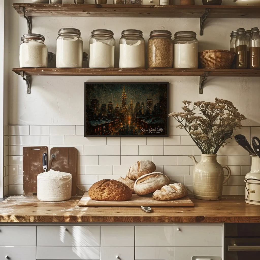 This poster captures the essence of New York City Skyline at Night, adding charm to any room with visuals inspired by real-world scenery. An iconic piece of wall art, it makes a striking addition to living rooms, bedrooms, offices, or dorms.