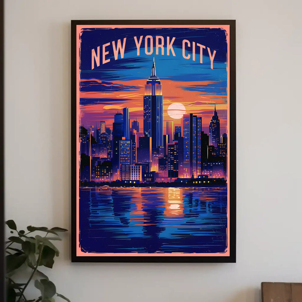 This New York City poster makes an ideal gift for travelers, NYC lovers, or anyone decorating a living room, office, or hallway. Add instant urban charm and cinematic sunset vibes to your space — shop now and let PosterGoat bring the skyline to your walls.