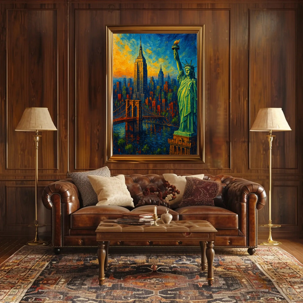 - Iconic skyline highlights: Featuring the Statue of Liberty, the Empire State Building, and the Brooklyn Bridge, it creates an immediate focal point and timeless conversation starter.