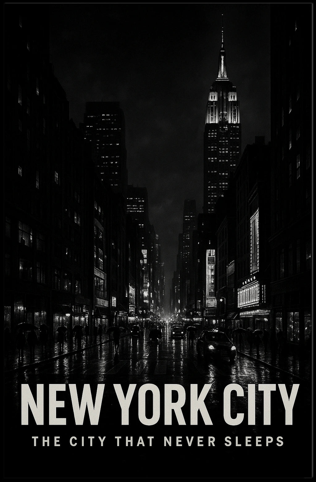 - Printed with precision and made to inspire, this artwork is more than decoration—it’s a conversation piece that connects city life, culture, and style. Bring New York City The City That Never Sleeps Poster into your home, classroom, or office today and let your walls tell a powerful story.