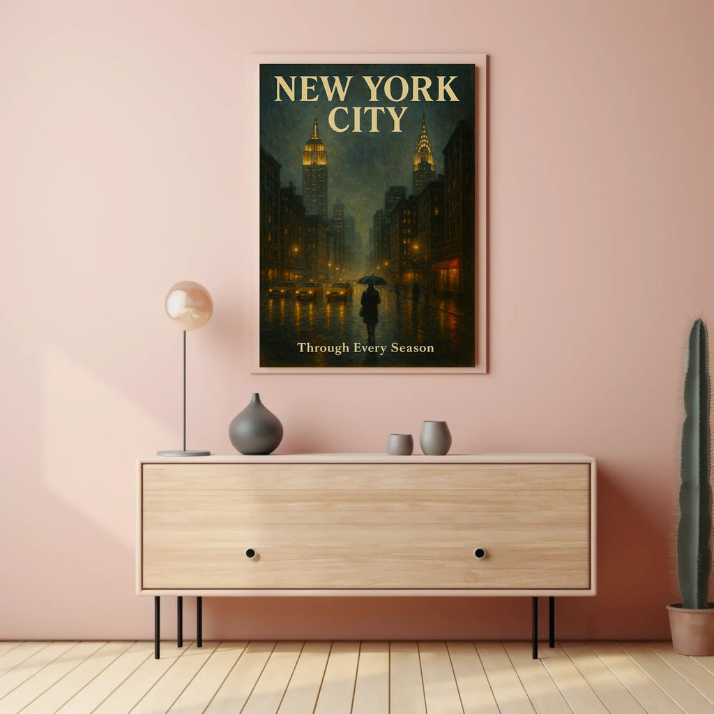 From the pale light of dawn over the skyline to the golden hues of autumn in Central Park, this poster celebrates the city through seasonal moods. It’s more than a picture—it’s a window into the energy, culture, and style that define New York.