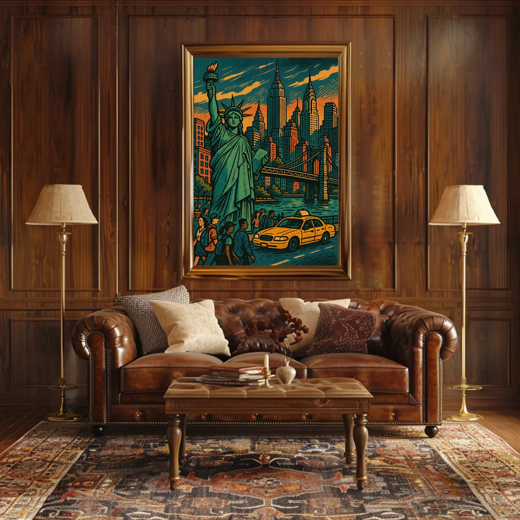 - Iconic landmarks — The inclusion of the Statue of Liberty and the unmistakable NYC skyline creates an instant focal point that sparks conversation and pride in urban living.