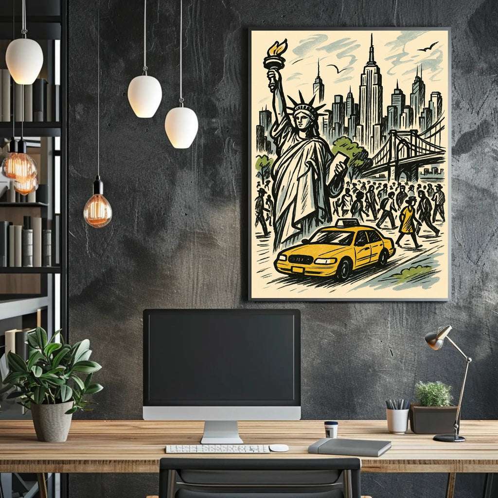 - Timeless urban charm — Features the Statue of Liberty and bustling streets to evoke wanderlust and urban pride.
