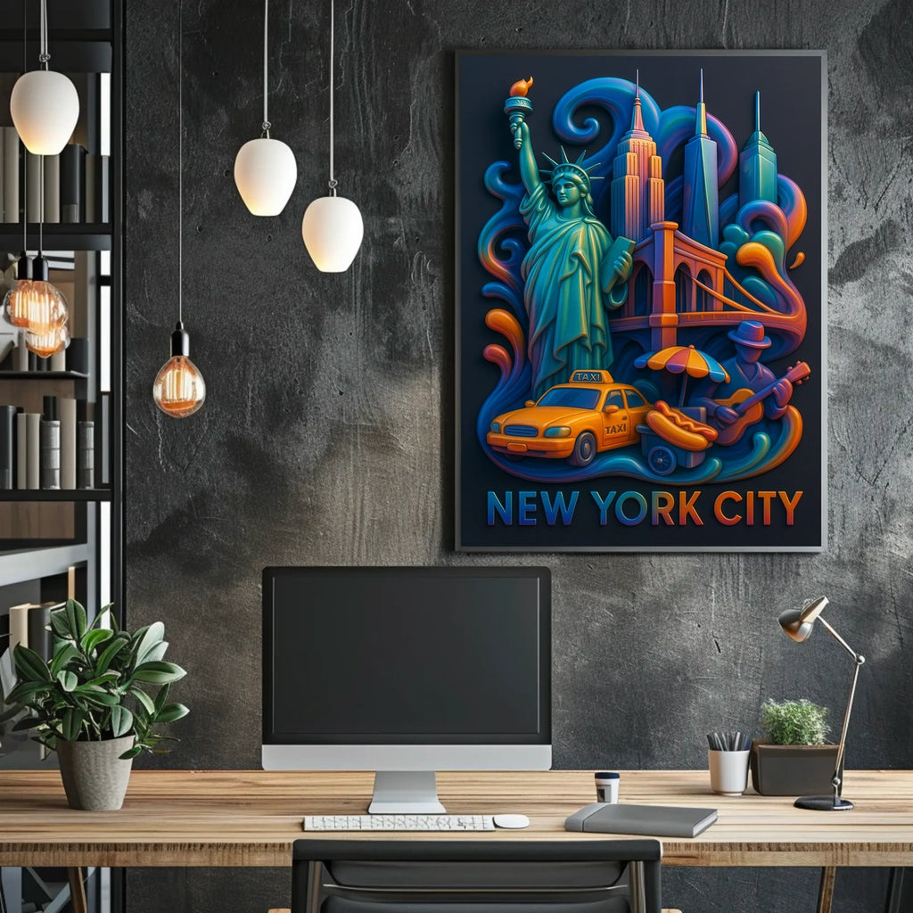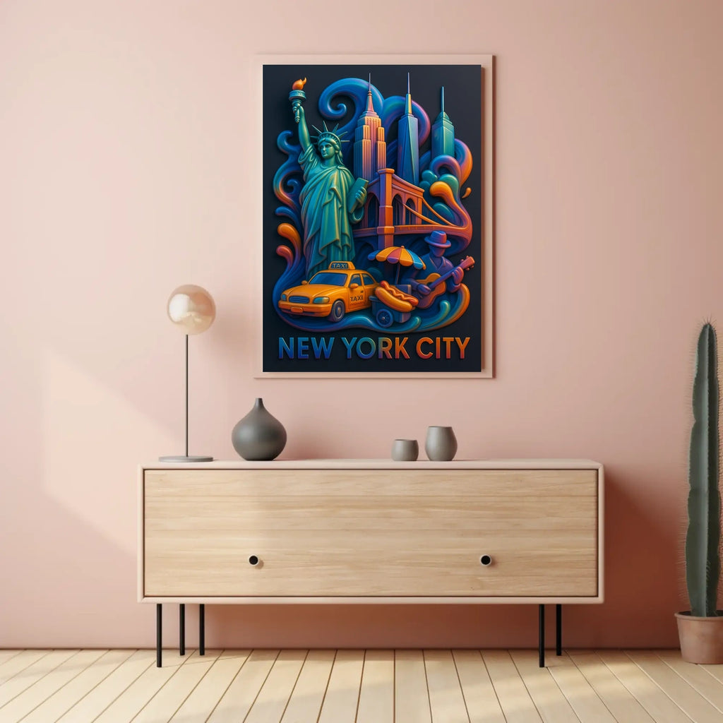 Bring home the energy of the Big Apple with this vibrant poster. A versatile decor piece that complements modern interiors and makes a bold statement. Shop now to transform your space with iconic city vibes.