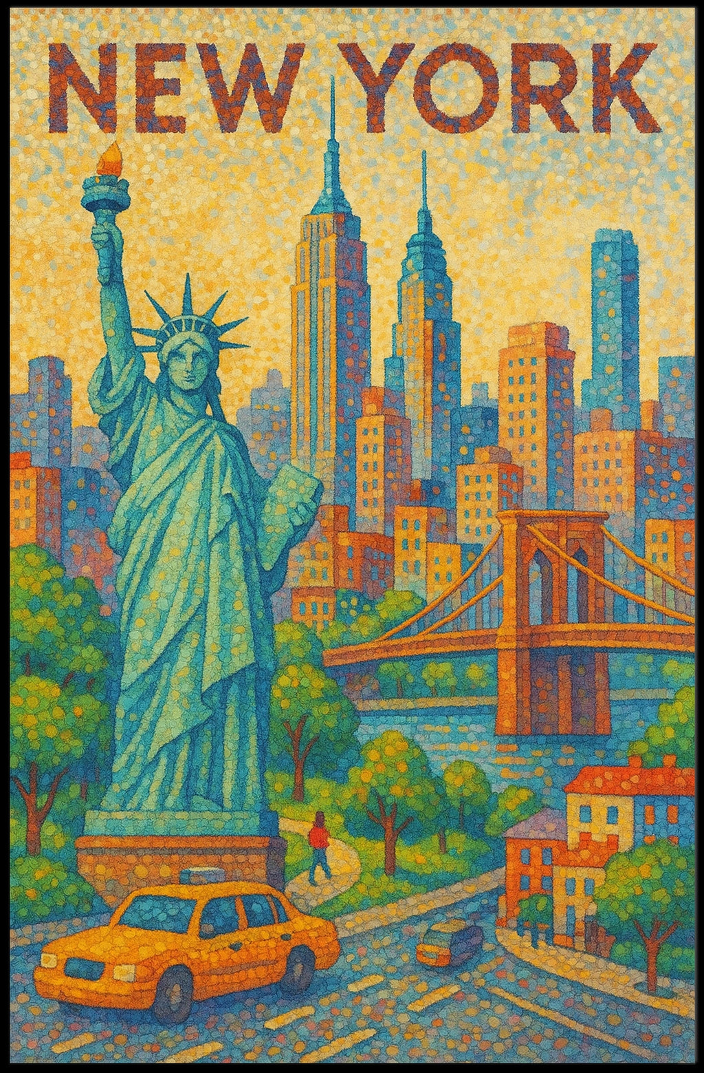 New York City Vibrant Pointillism Art Poster