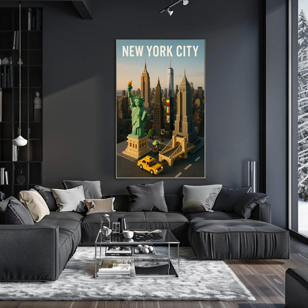 Intro: Immerse your space in the playful charm of New York with this vibrant poster. Rendered in a toy-brick style, it reimagines iconic landmarks—the Statue of Liberty, the Empire State Building, and bustling avenues—into a cheerful, collectible artwork that sparks imagination in any room.