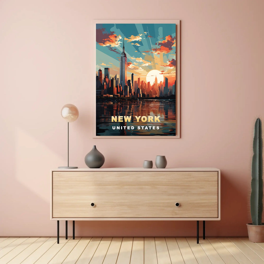 Elevate any wall with a piece that combines iconic cityscapes, sunset glow, and modern design. This poster brings everyday storytelling and atmosphere to your space—perfect for living rooms, bedrooms, offices, or galleries. Ready to transform your decor? Shop now and celebrate the energy of New York.