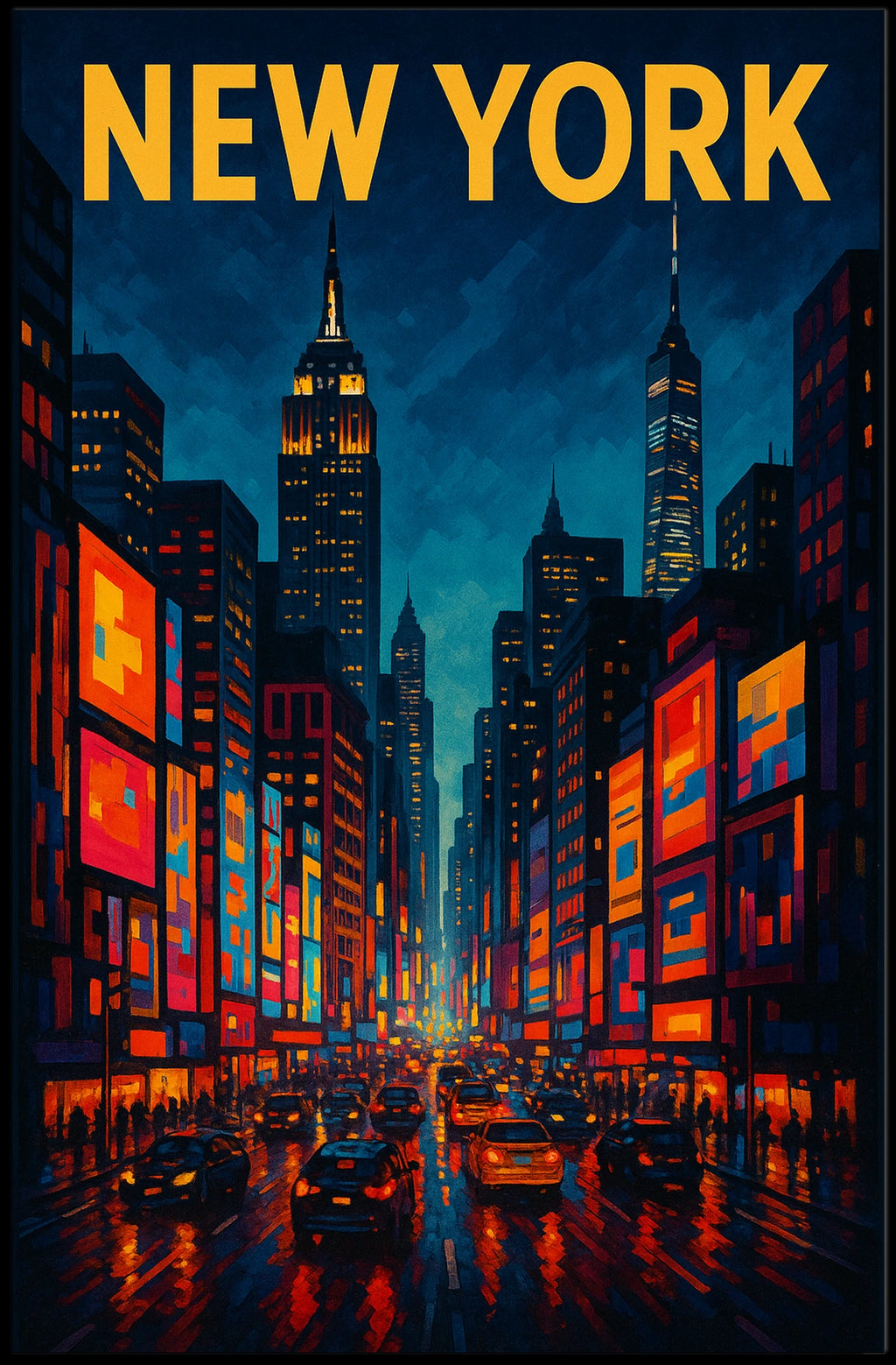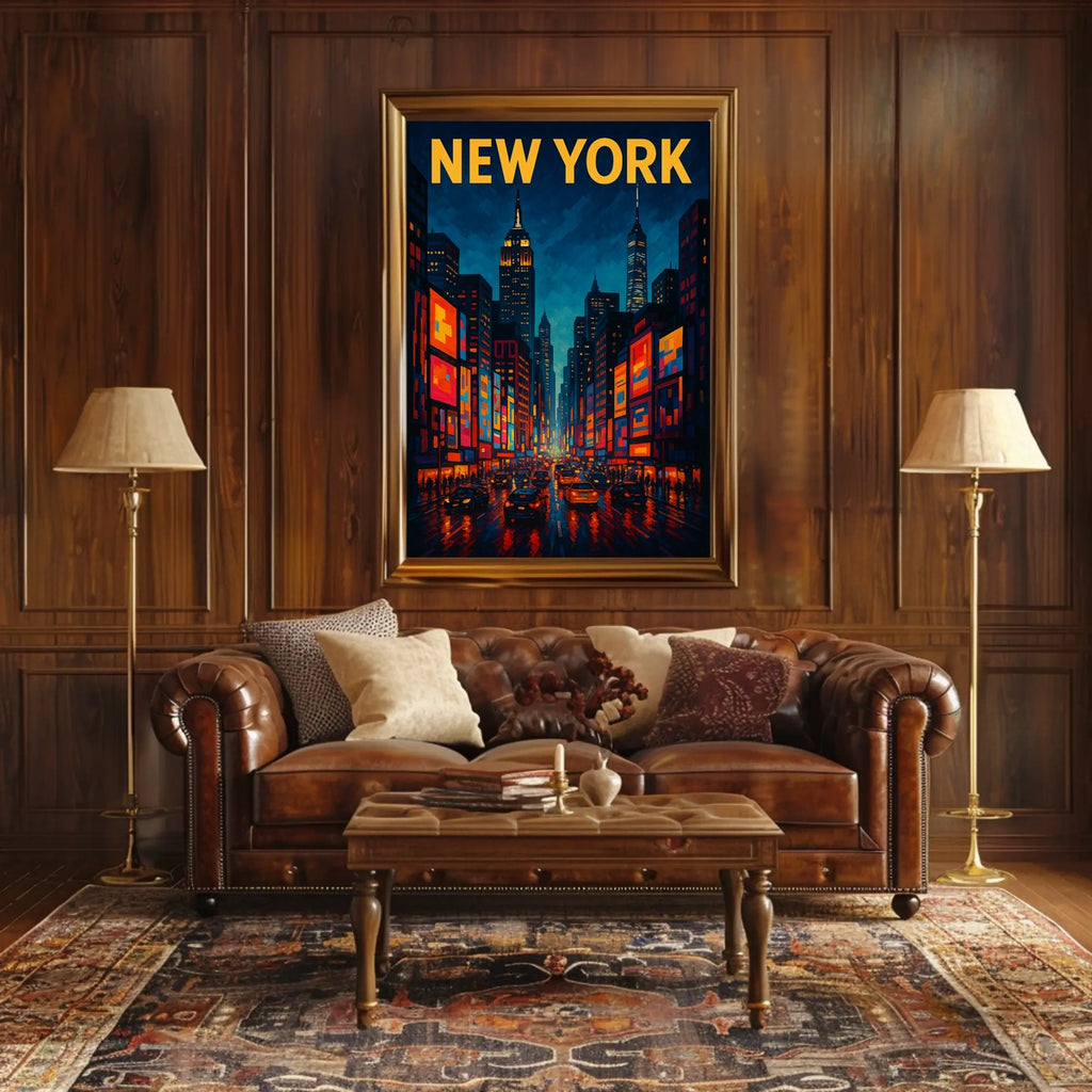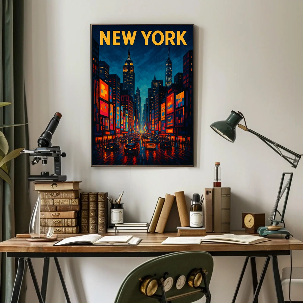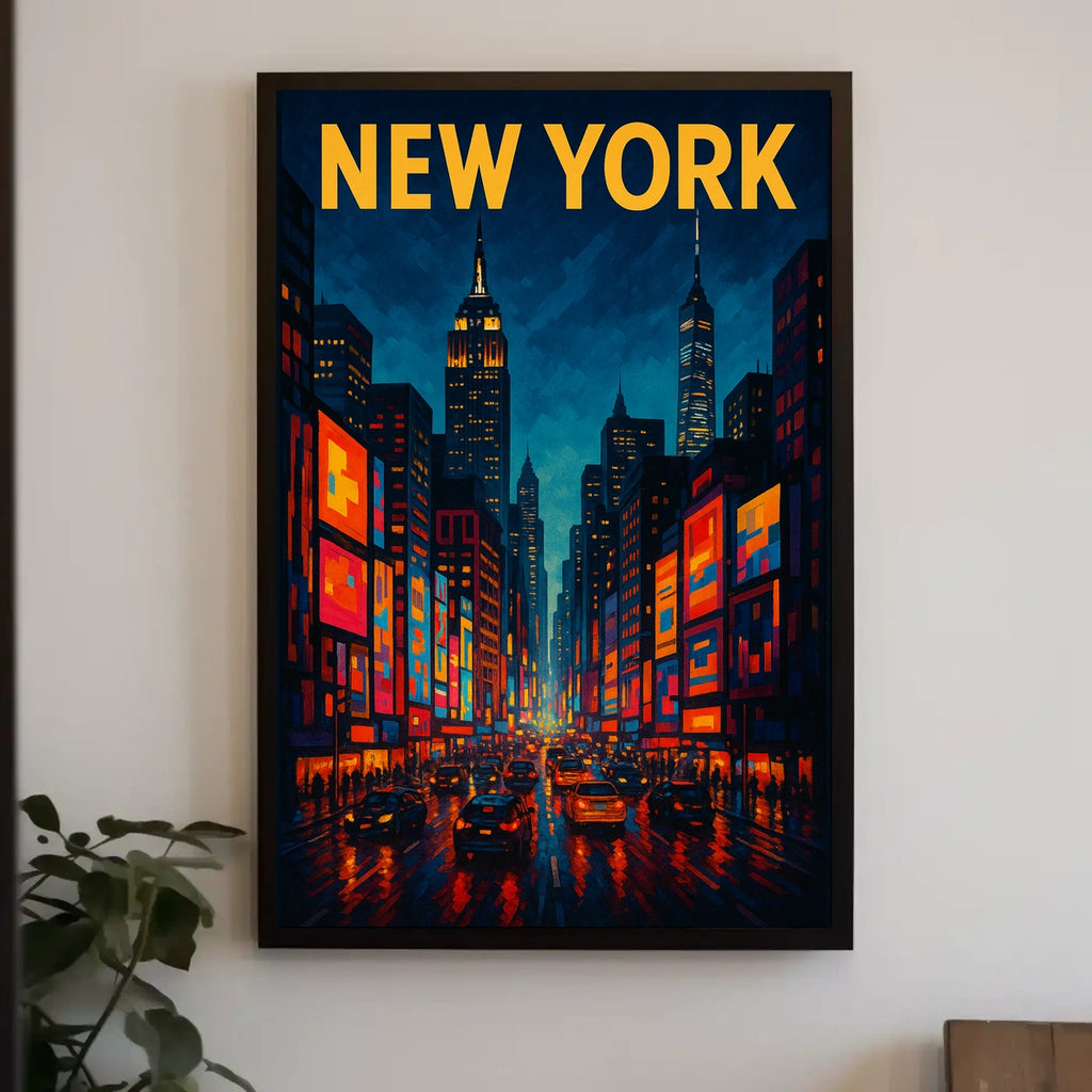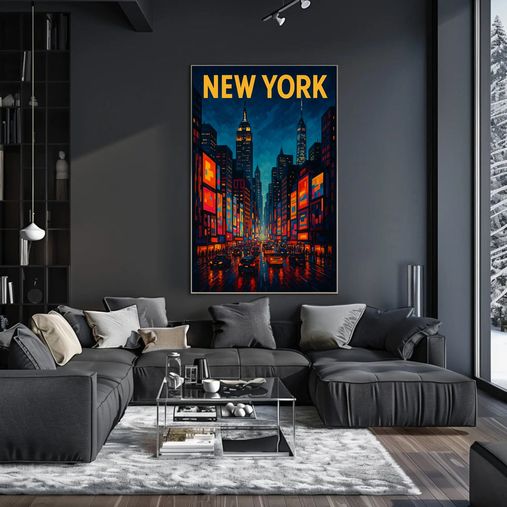 Immerse your space in the electric energy of New York with this vibrant night skyline poster. The modern impressionistic artwork captures dusk-lit silhouettes and illuminated skyscrapers, delivering urban charm and bold visual impact for any room—living room, bedroom, or creative workspace. Iconic hints evoke the city’s skyline, inviting daily inspiration with every glance.