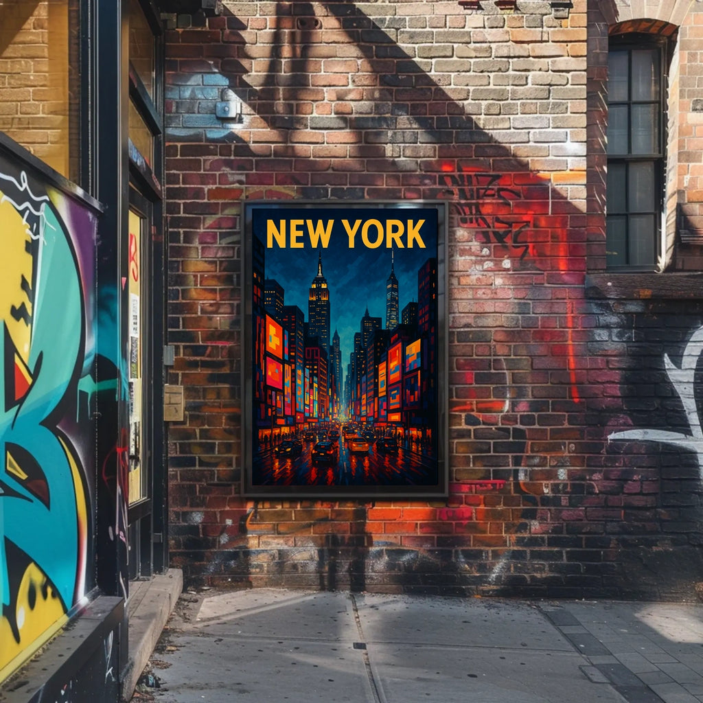 Elevate your walls with this cityscape poster’s energy and elegance. It’s a bold statement piece that pairs well with contemporary and eclectic interiors. Add it to your cart now and bring timeless New York allure into your space.