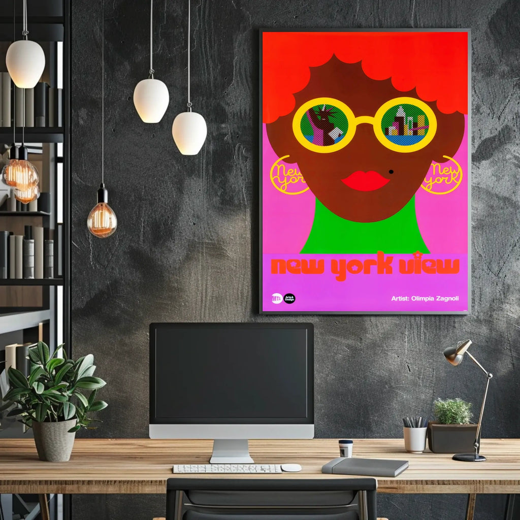 Immerse yourself in the dynamic energy of New York City with this vibrant poster—a modern, pop-art illustration that brings the city's pulse into your space. Bold color, graphic shapes, and a playful typographic treatment make the piece instantly engaging and chic for contemporary interiors.