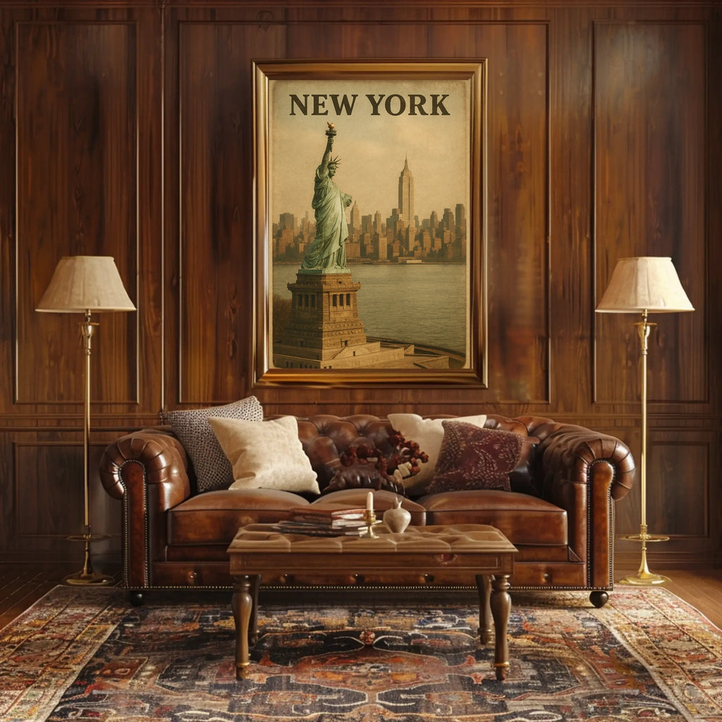 Designed for decor lovers and wanderlust spirits, this art print adds charm to any room with visuals inspired by real-world scenery—the iconic New York skyline alongside the Statue of Liberty.