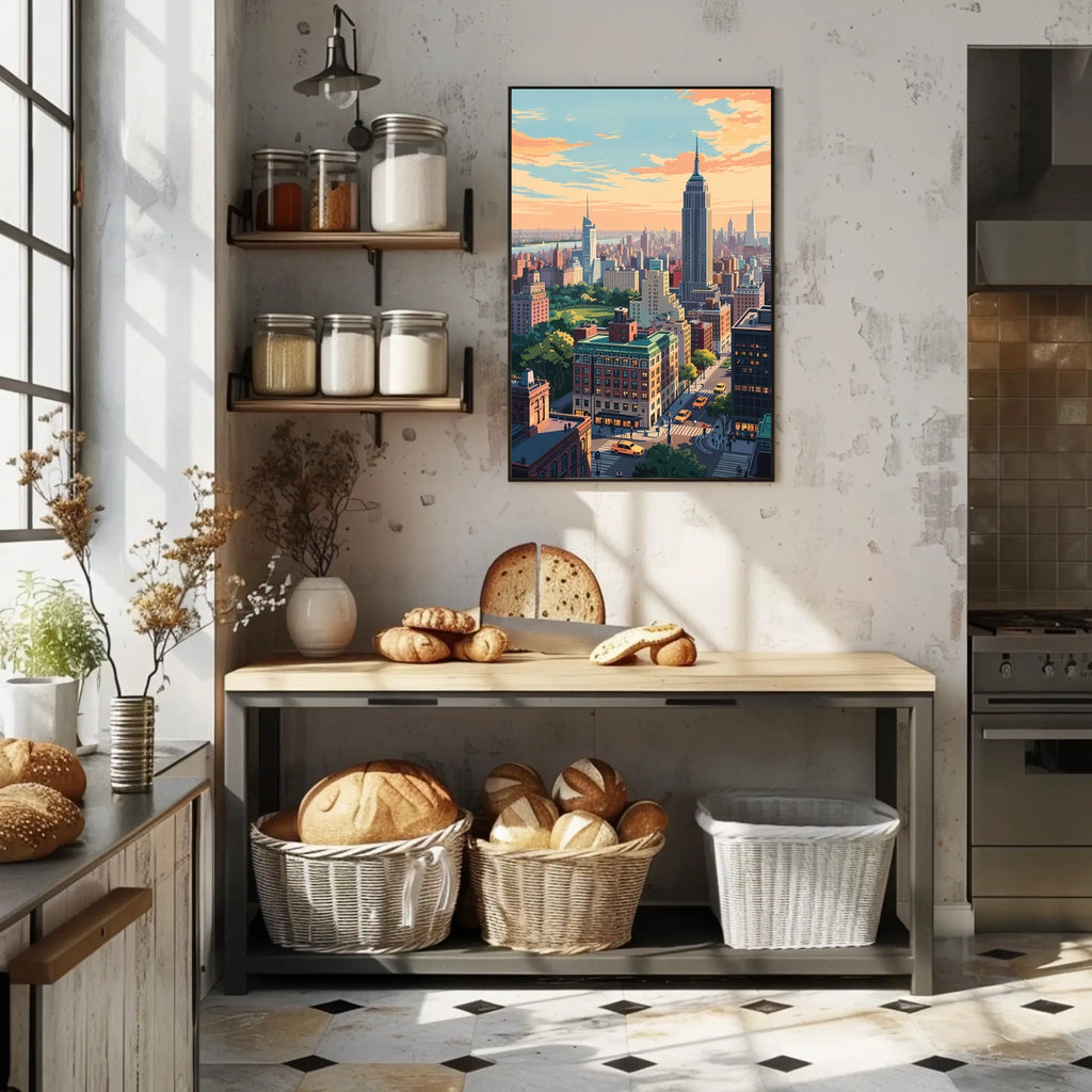 Elevate your walls with this New York Sunset Cityscape poster and bring timeless urban charm into your space. Ready to frame and admire, this print fits contemporary interiors. Shop now to transform your décor.