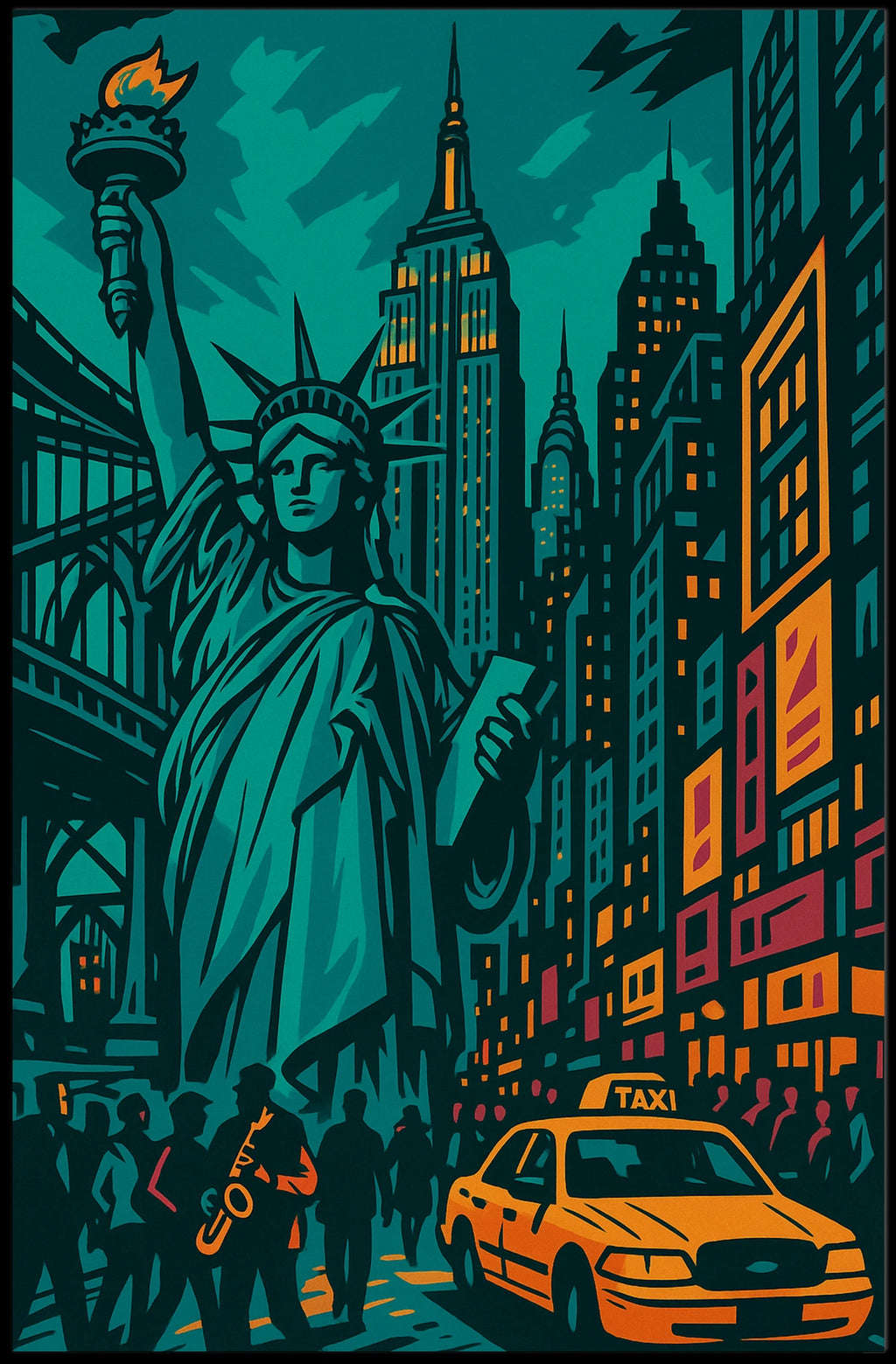 Experience the heartbeat of New York City with our New York Vibes art print. This captivating illustration captures iconic landmarks, including the Statue of Liberty, set against a lively skyline to evoke the metropolis that never sleeps. A bold, contemporary piece that instantly elevates living rooms, bedrooms, or offices with urban energy.