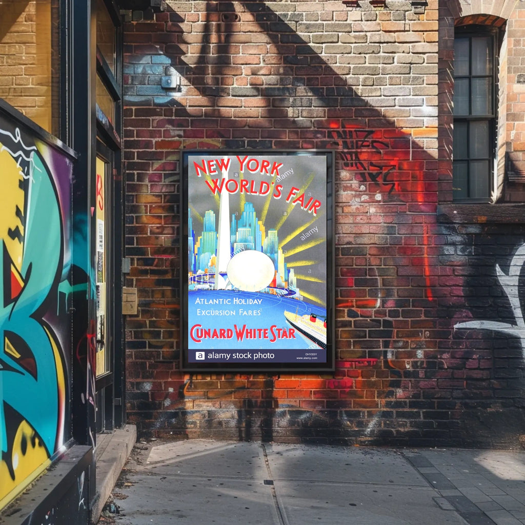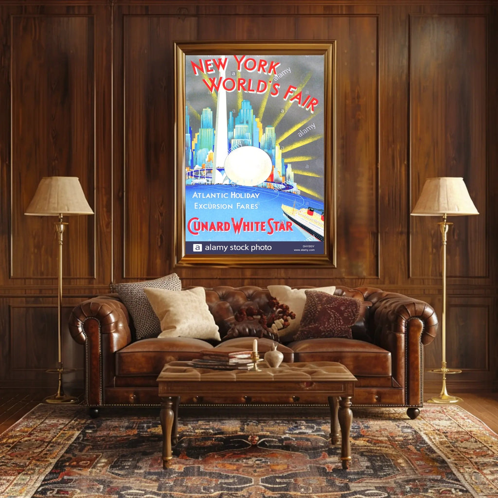 Step back to the golden age of travel with this New York World's Fair Vintage Travel Poster. Celebrating innovation and futurism from the early to mid-20th century, the artwork blends geometric elegance with the era’s iconic Trylon and Perisphere set against a stylized cityscape, inviting admiration and conversation.