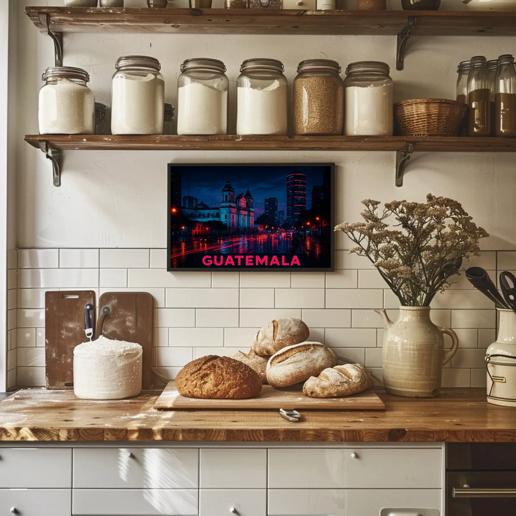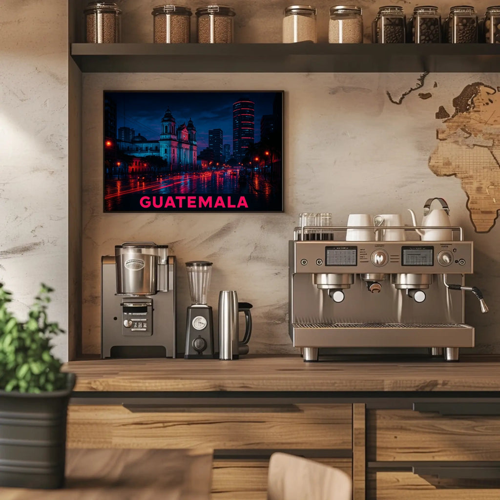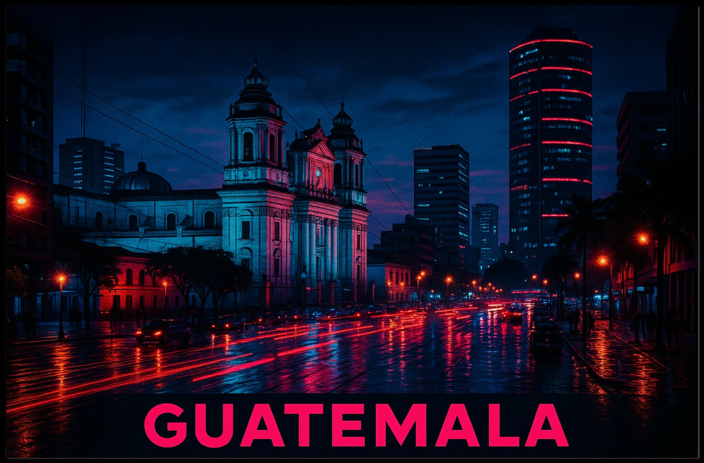 - Detailed design highlighting Nightscape of Guatemala City Poster, capturing the city's skyline after dark.