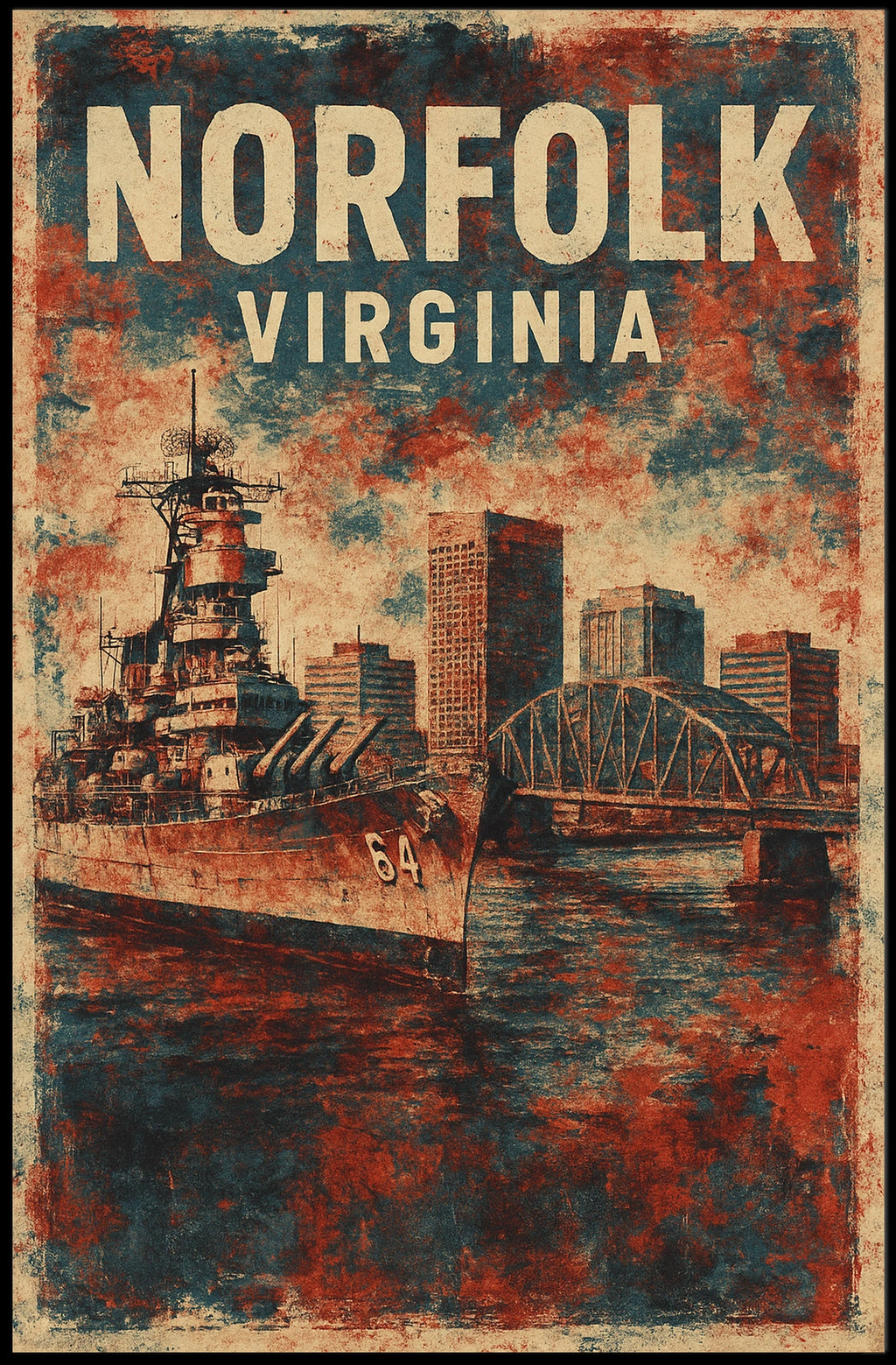 Norfolk, Virginia Naval Heritage Poster — Celebrate the beauty of Norfolk's naval heritage with this timeless wall art. Designed to capture its unique appeal, this piece is perfect for decor lovers and wanderlust spirits, a scenic Virginia poster, and a memorable souvenir that brings meaning and inspiration into your space.