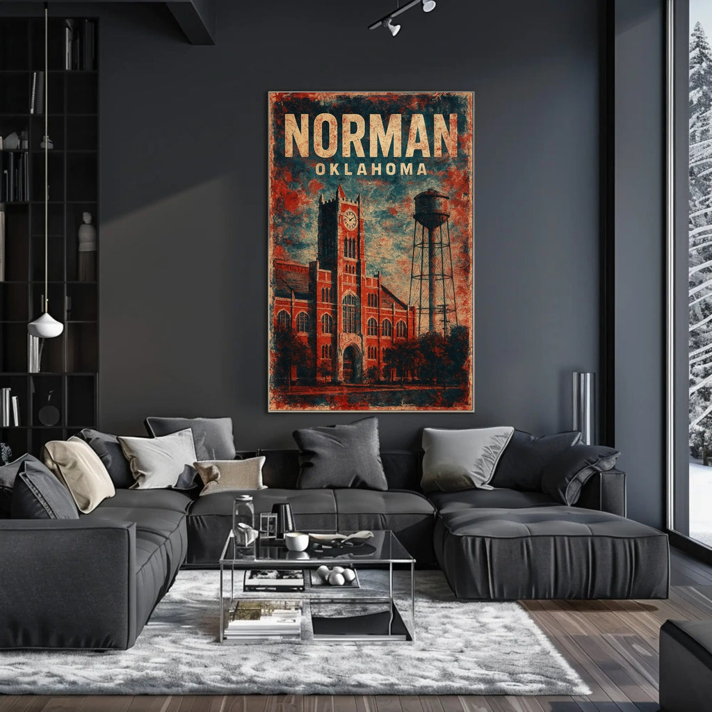 Perfect as wall art, this Norman, Oklahoma poster also serves as a meaningful gift or souvenir for travelers and fans of the region.