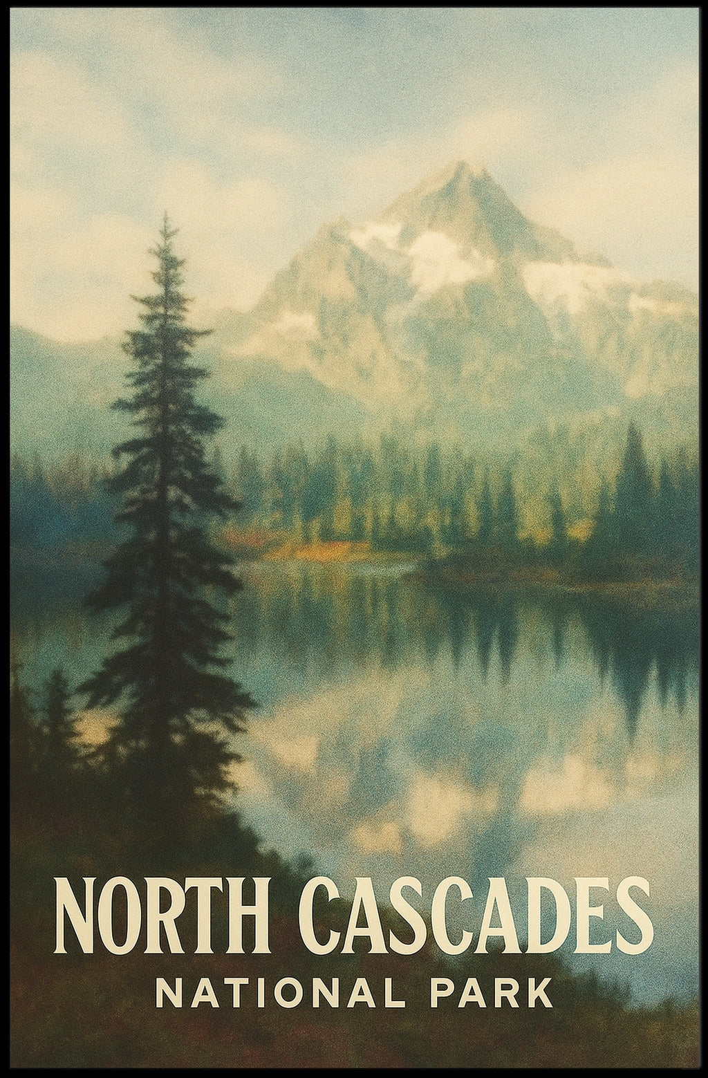 Celebrate the beauty of North Cascades National Park Poster with this timeless wall art. This poster captures the essence of North Cascades National Park, designed for decor lovers and wanderlust spirits, and adds charm to any room with visuals inspired by real-world scenery.